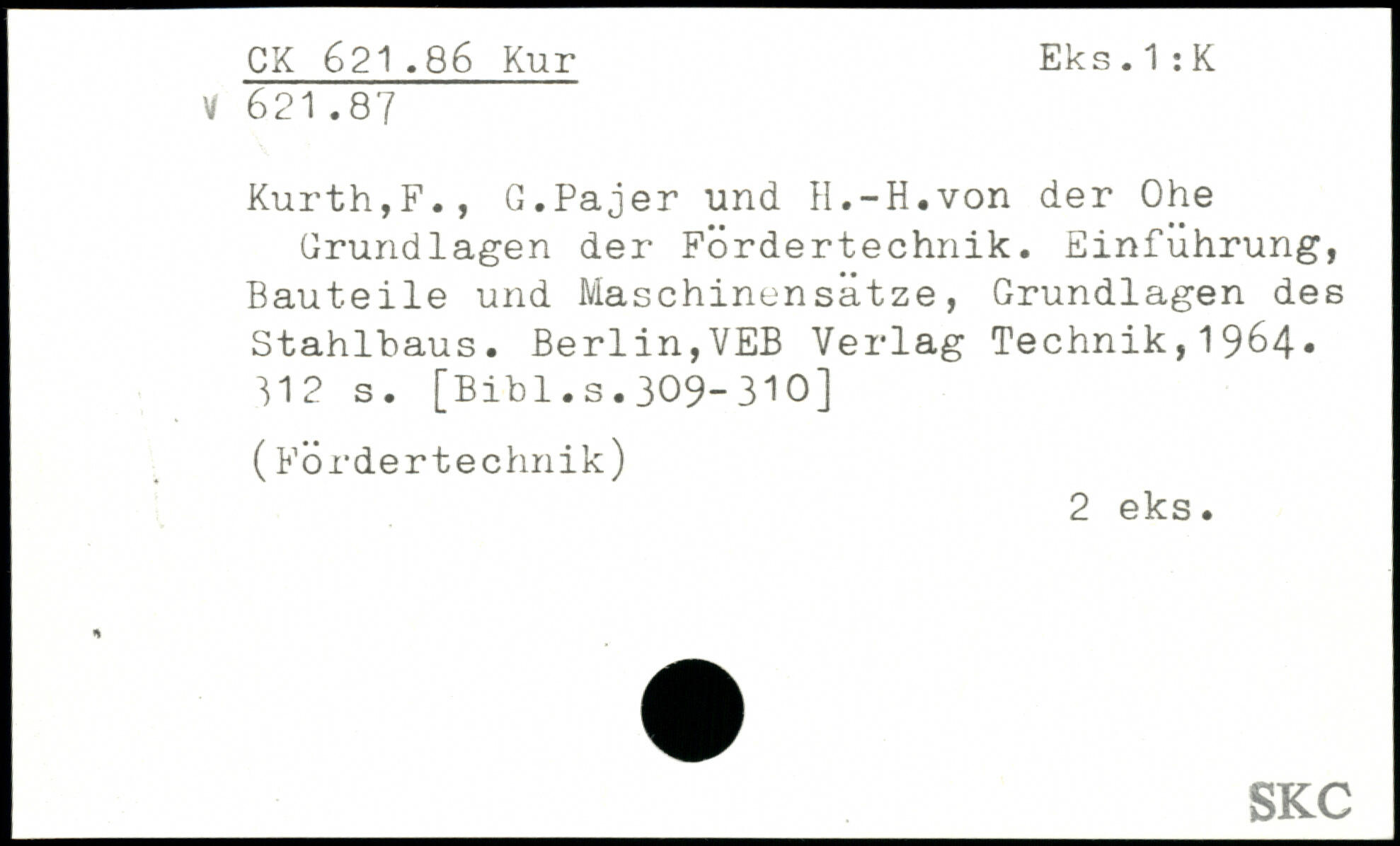 Kurth,F., G.Pajer und H.-H.von der Ohe Grundlagen der Fördertechnik. Einführung, Bauteile und Maschinensätze, Grundlagen des Stahlhaus.