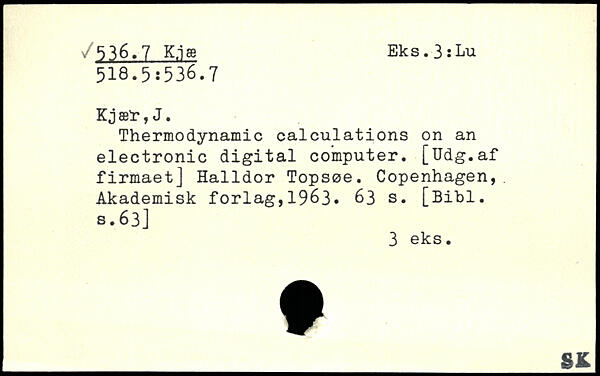 Thermodynamic calculations on an electronic digital computer. [Udg.af firmaetj Halldor Topsoe. Copenhagen,. Akademisk forlag,1963.