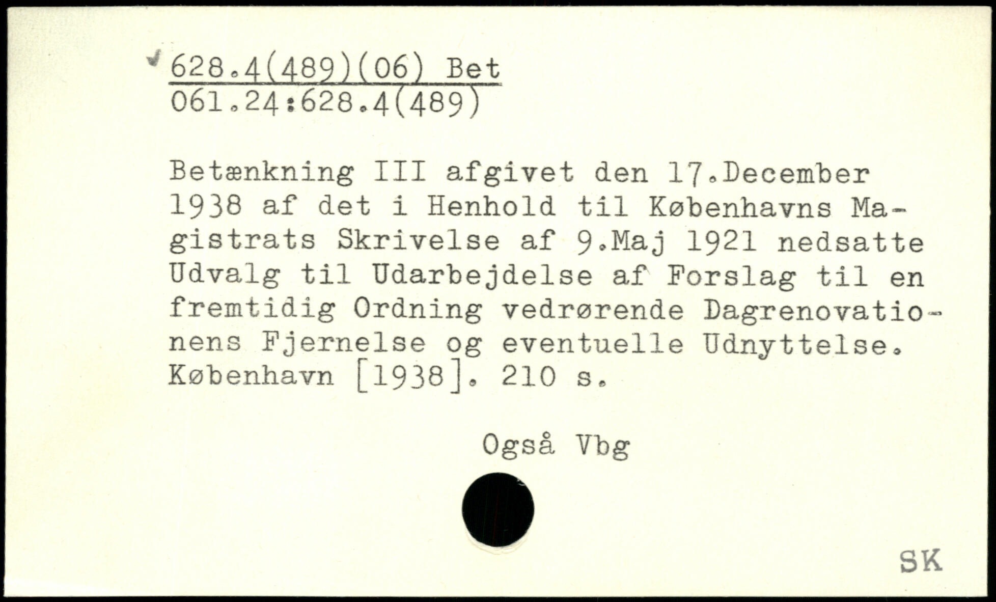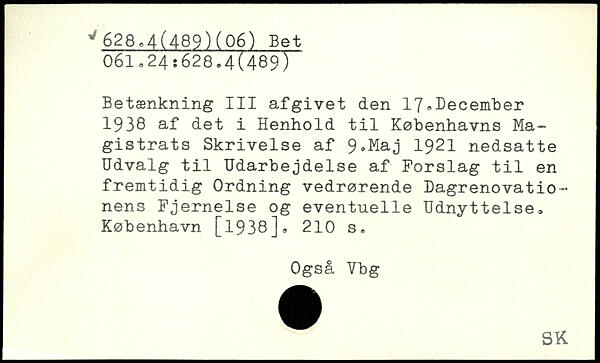 Betænkning III afgivet den 17,December 1938 af det i Henhold til Københavns Magistrats Skrivelse af 9,Maj 1921 nedsatte Udvalg til Udarbejdelse af Forslag til en fremtidig Ordning vedrørende Dagrenovationens Fjernelse og eventuelle Udnyttelse. København