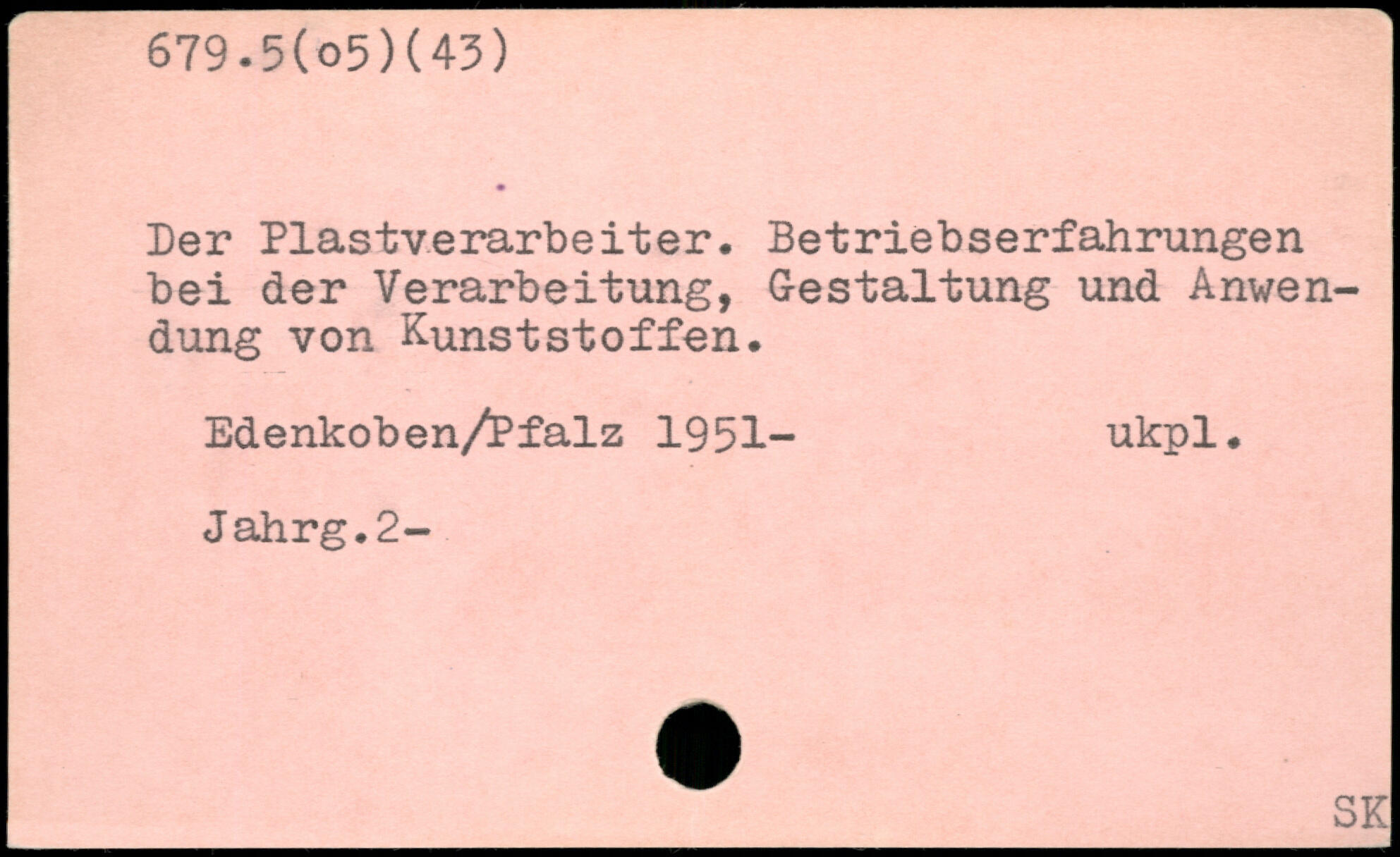 Der Plastverarbeiter, Betriebserfahrungen bei der Verarbeitung, Gestaltung und Anwendung von Kunststoffen. Edenkoben/Pfalz 1951- ukpl. Jahrg.2-