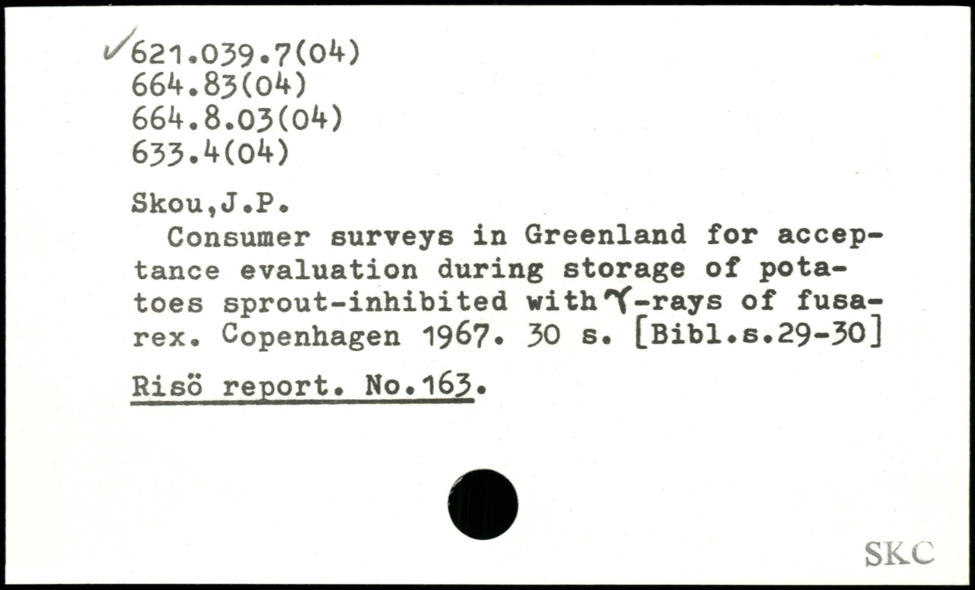 Consumer surveys in Greenland for acceptance evaluation during storage of potatoes sprout-inhibited with'X'-rays of fusa-rex. Copenhagen 19^7.