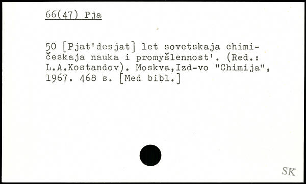 50 [Pjat'desjat] let sovetskaja chimi-ceskaja nauka i promyslennost'. (Red.: L.A.Kostandov). Moskva,Izd-vo "Chimija", 1967.