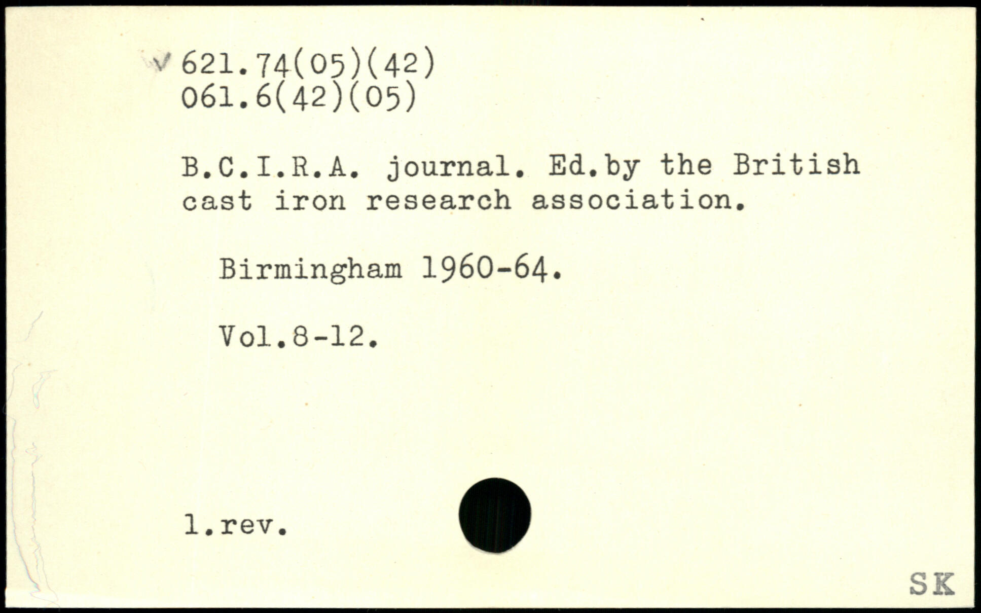 B.C.I.R.A. journal. Ed.by the British cast iron research association. Birmingham 1960-64.