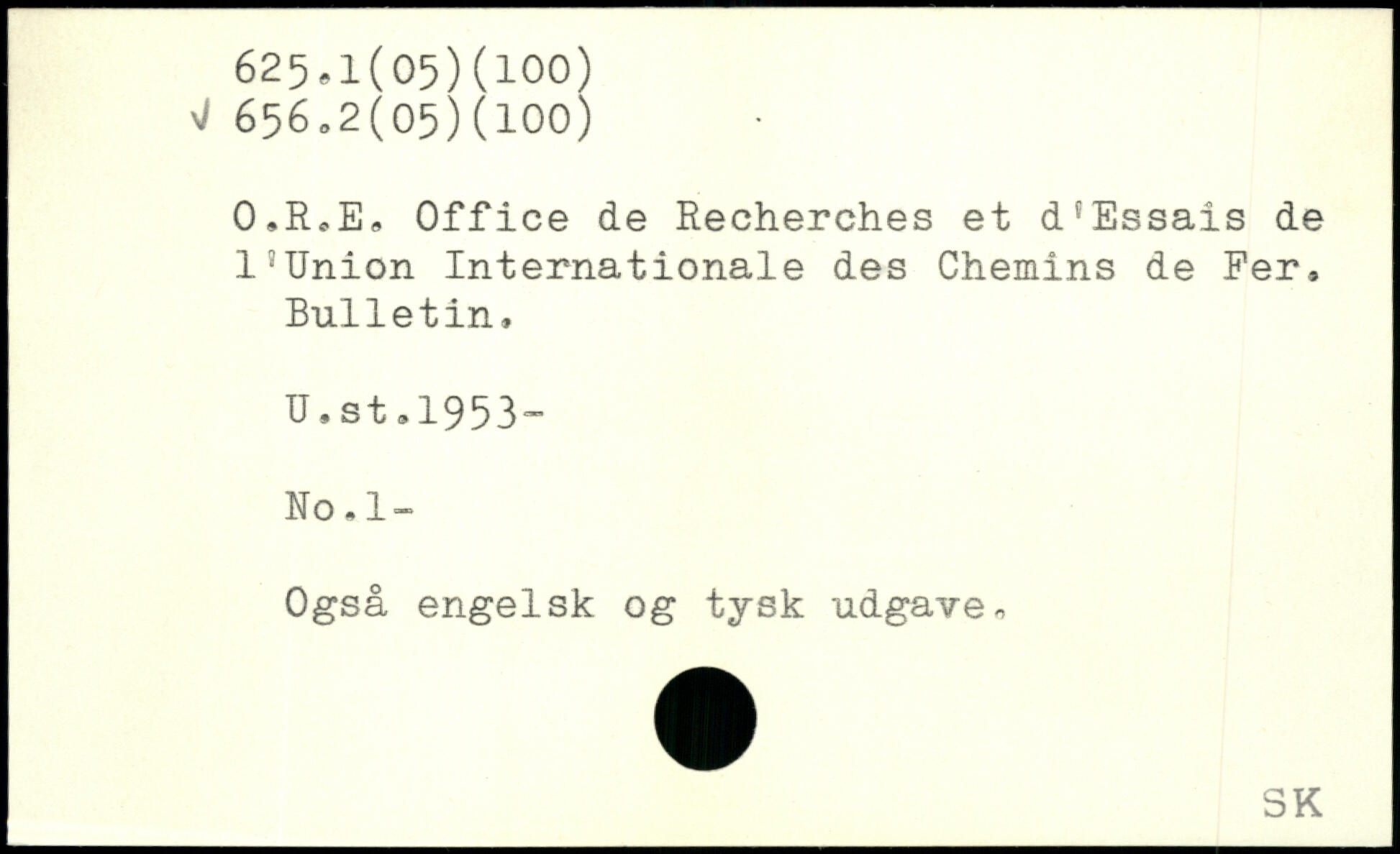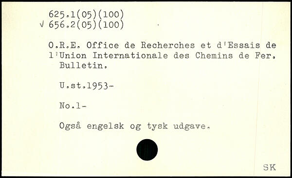 O.RoE. Office de Recherches et d'Essais de l3Union Internationale des Chemins de Fer, Bulletin, U.st .1953” No.l- Også engelsk og tysk udgave.