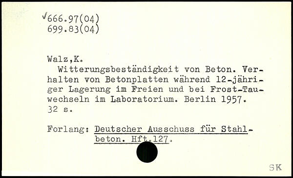 Witterungsbeständigkeit von Beton. Verhalten von Betonplatten während 12-jähriger Lagerung im Freien und hei Frost-Tau-wechseln im Laboratorium.