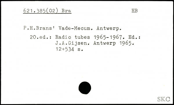 P.H.Brans’ Vade-Mecum. Antwerp.