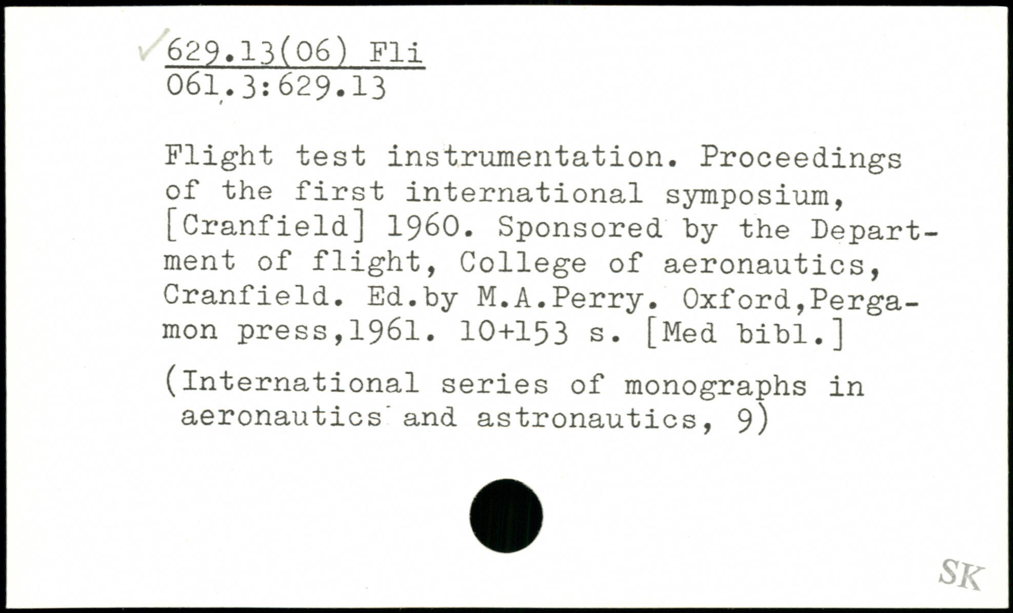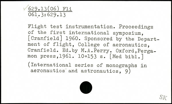 Flight test instrumentation. Proceedings of the first international symposium, [Cranfield] 1960. Sponsored hy the Department of flight, College of aeronautics, Cranfield. Ed.by M.A.Perry.