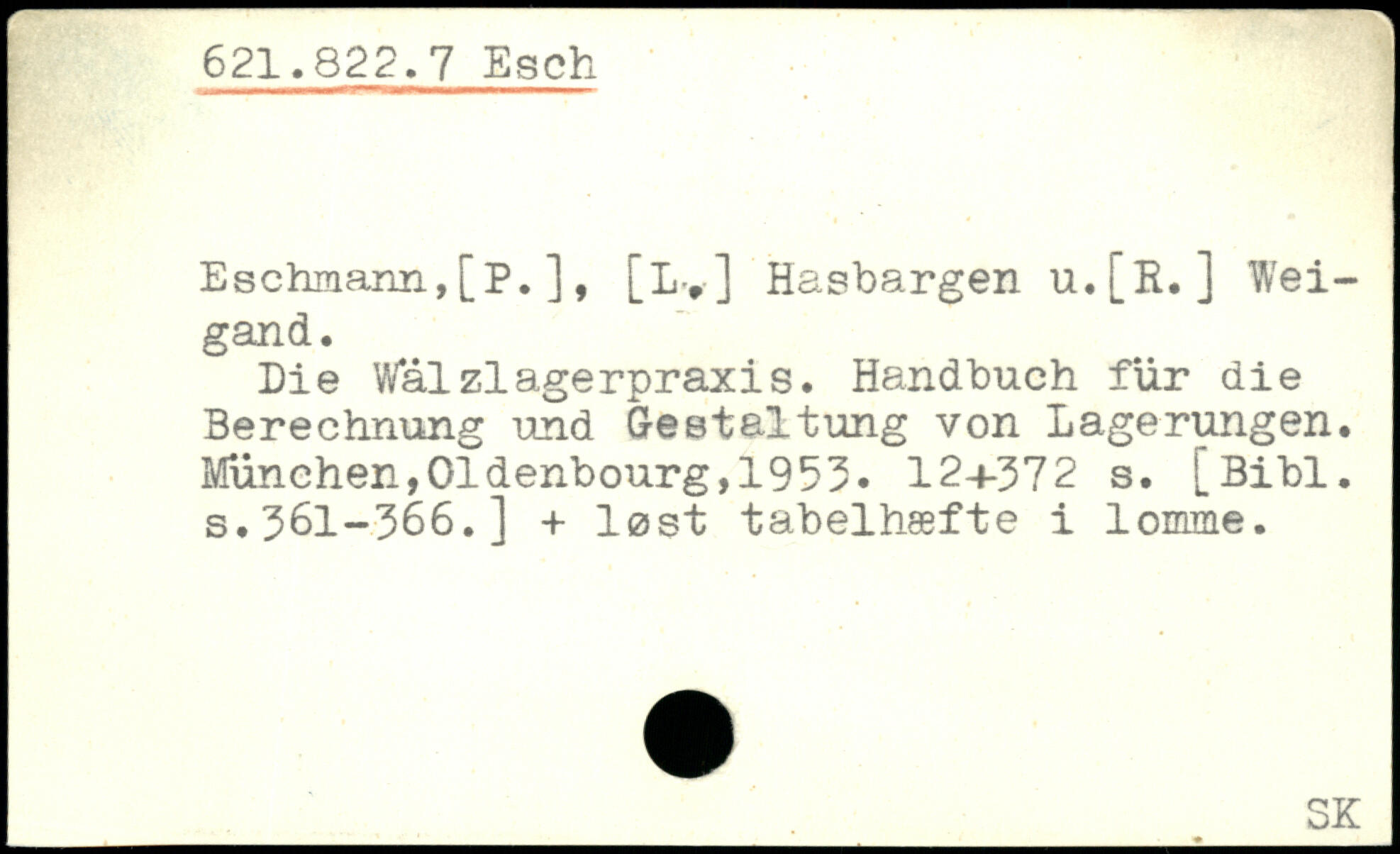 Eschmann,[P.], [L>] Hasbargen u.[H.] Weigand. Die Wälzlagerpraxis. Handbuch für die Berechnung und Gestaltung von Lagerungen.