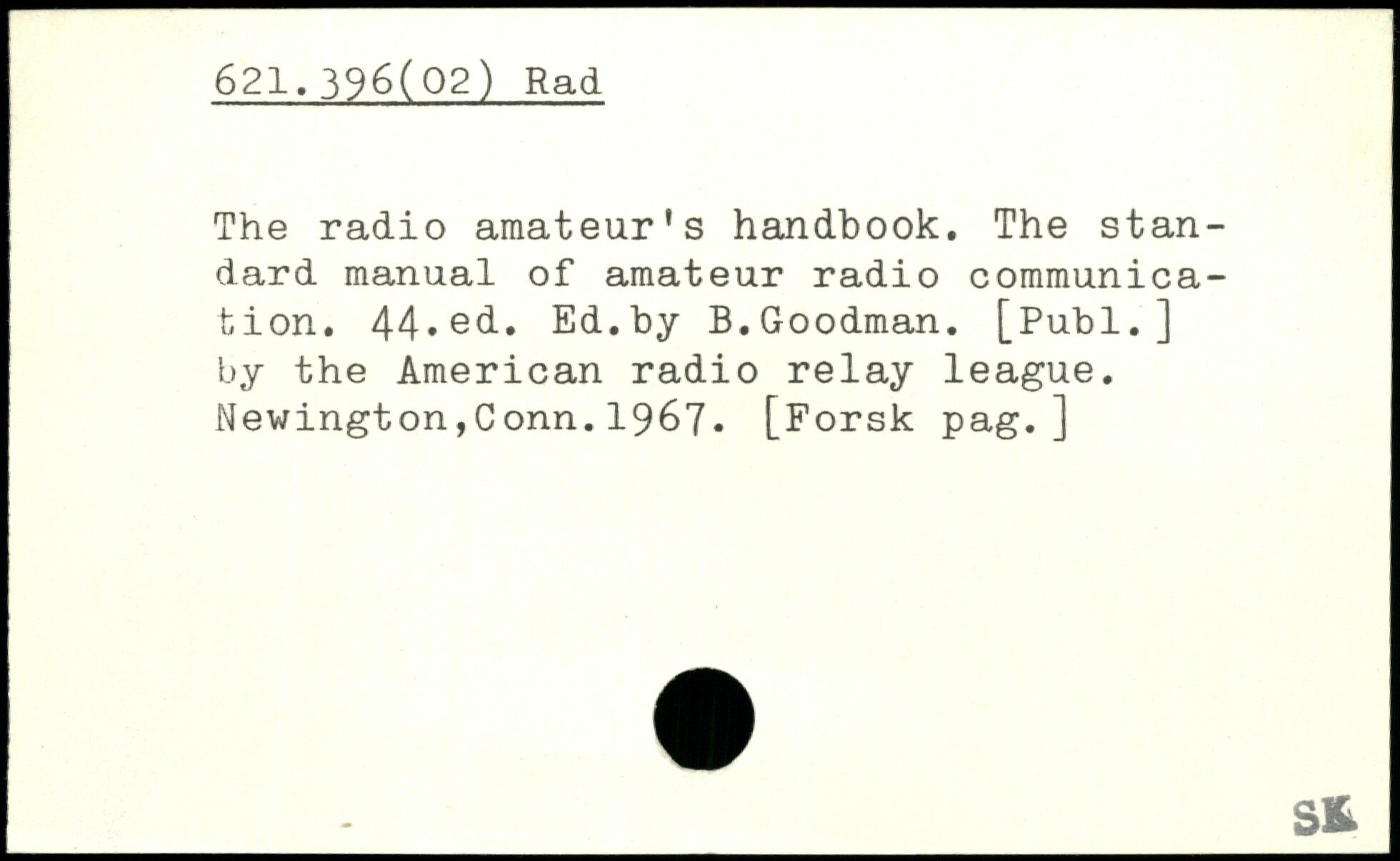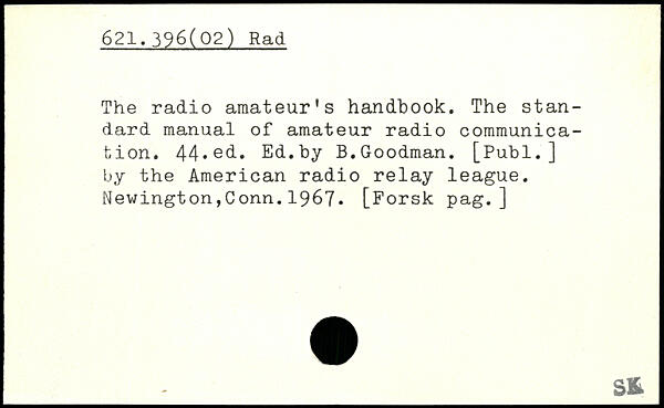 The radio amateur’s handbook. The standard manual of amateur radio communication. 44. ecL- Ed.by B.Goodman. [Publ. ] by the American radio relay league. Newington,Conn.1967. [Forsk pag.]