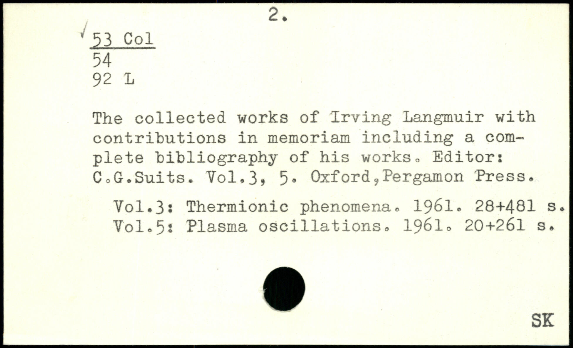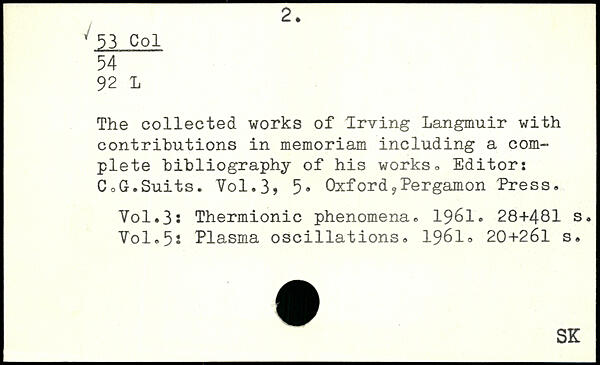 The collected works of Irving Langmuir with contributions in memoriam including a complete bibliography of his works. Editor: CoG.Suits.