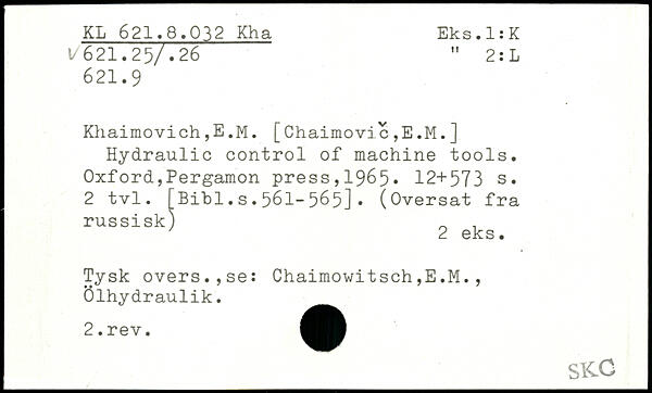 Khaimovich,E.M. [Chaimovic,E.M.J Hydraulic control of machine tools.