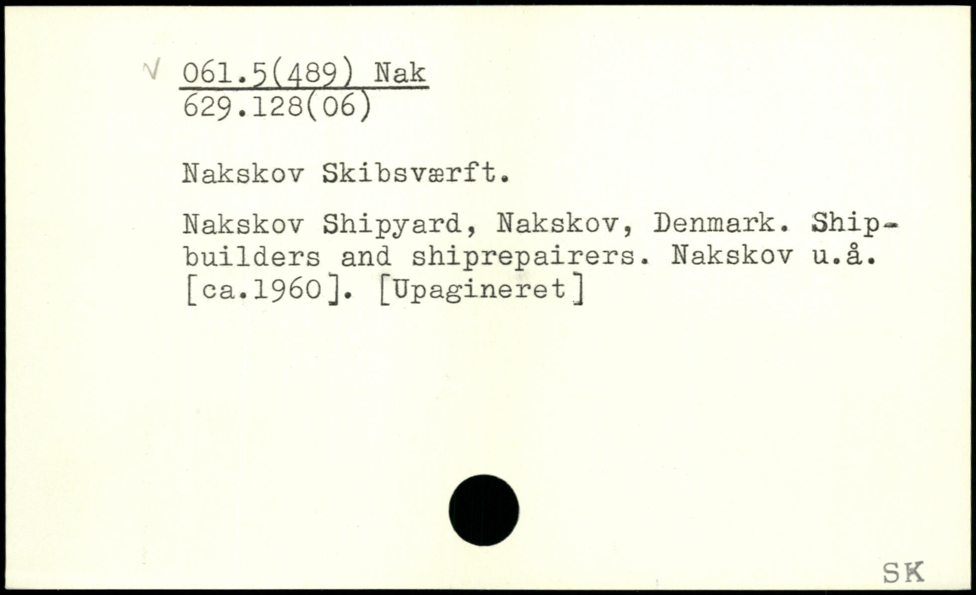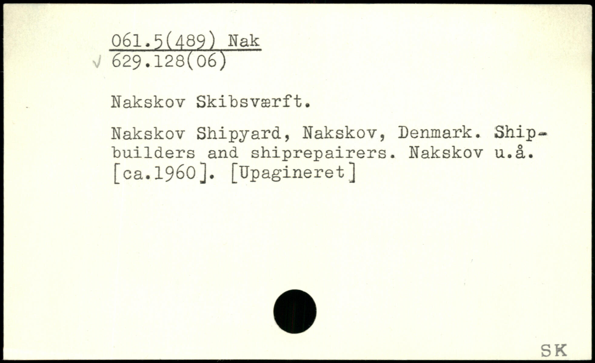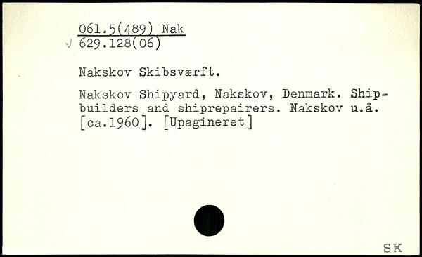 Nakskov Skibsværft. Nakskov Shipyard, Nakskov, Denmark. Shipbuilders and shiprepairers. Nakskov u.å. [ca.1960]. [Upagineret]