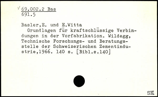 Grundlagen für kraftschlussige Verbindungen in der Vorfabrikation. Wildegg, Technische Forschungs- und Beratungsstelle der Schweizerischen Zementindu-strie,1966.