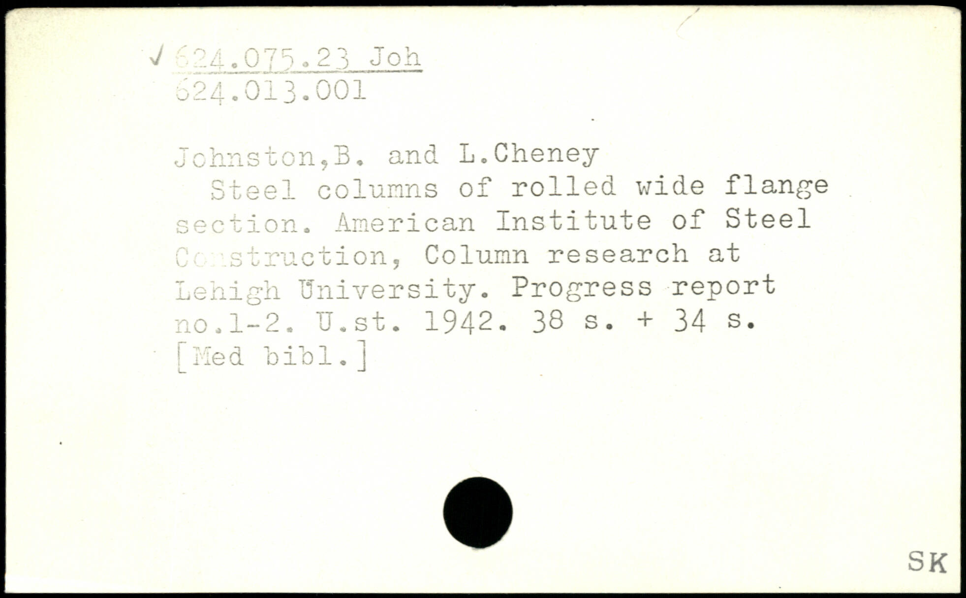 Steel columns of rolled wide flange section. American Institute of Steel \struction, Column research at Lehigh University. Progress report no.1-2. TJ.st. 1942.