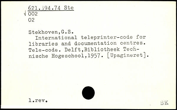 International teleprinter-code for libraries and documentation centres. Tele-code.