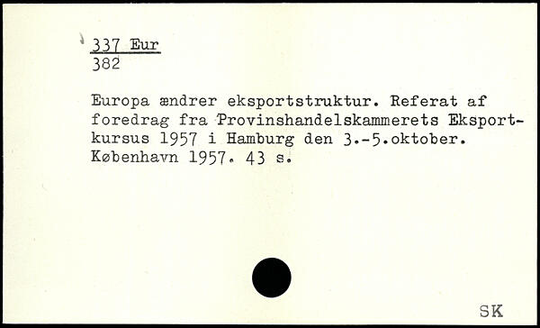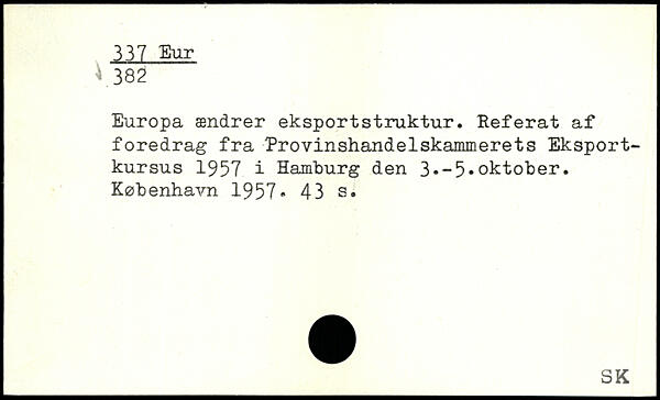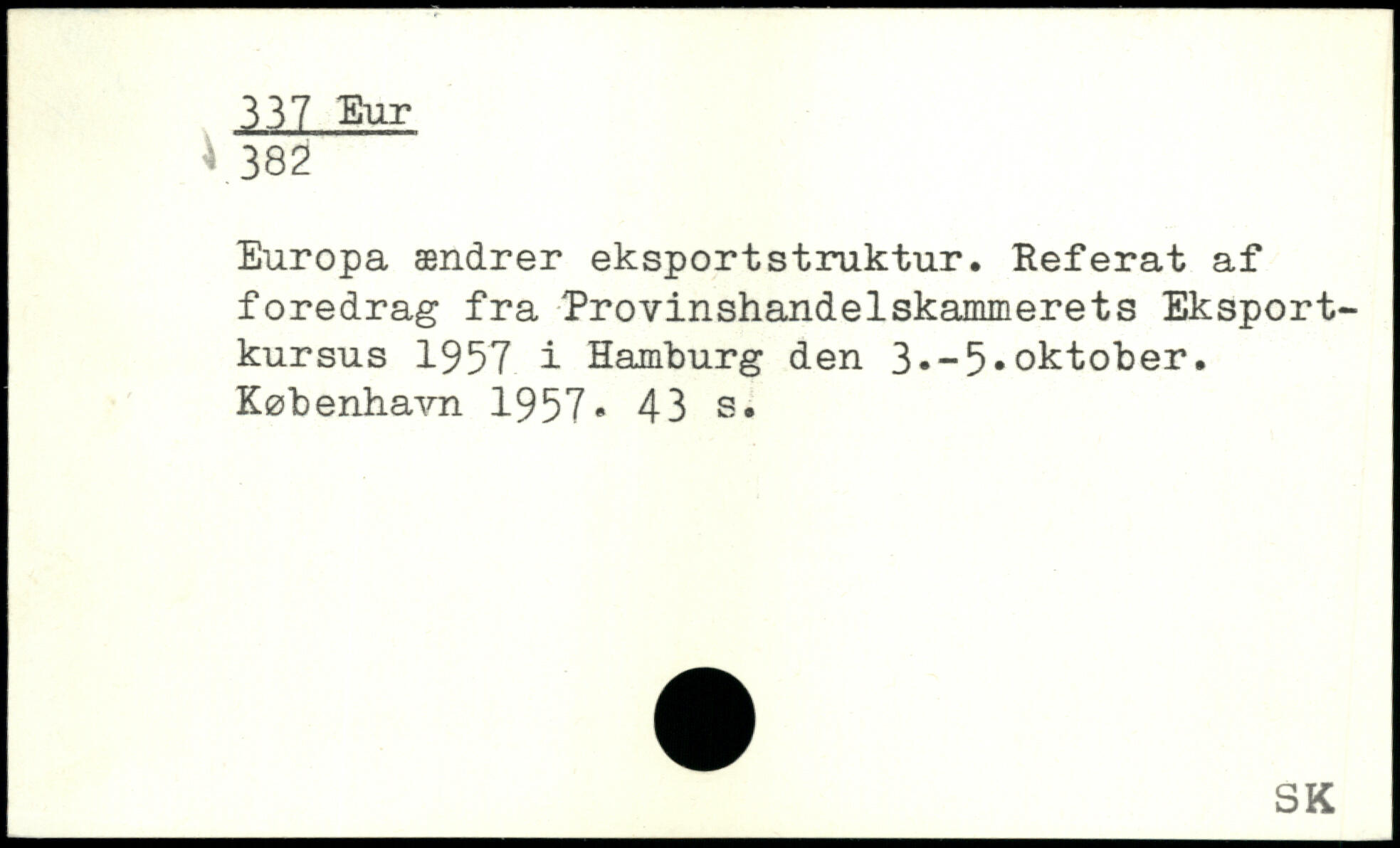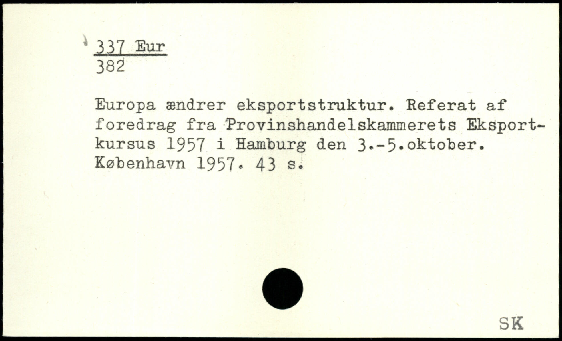 Europa ændrer eksportstruktur. Referat af foredrag fra Provinshandelskammerets Eksportkursus 1957 i Hamburg den 3. -5,oktober.
