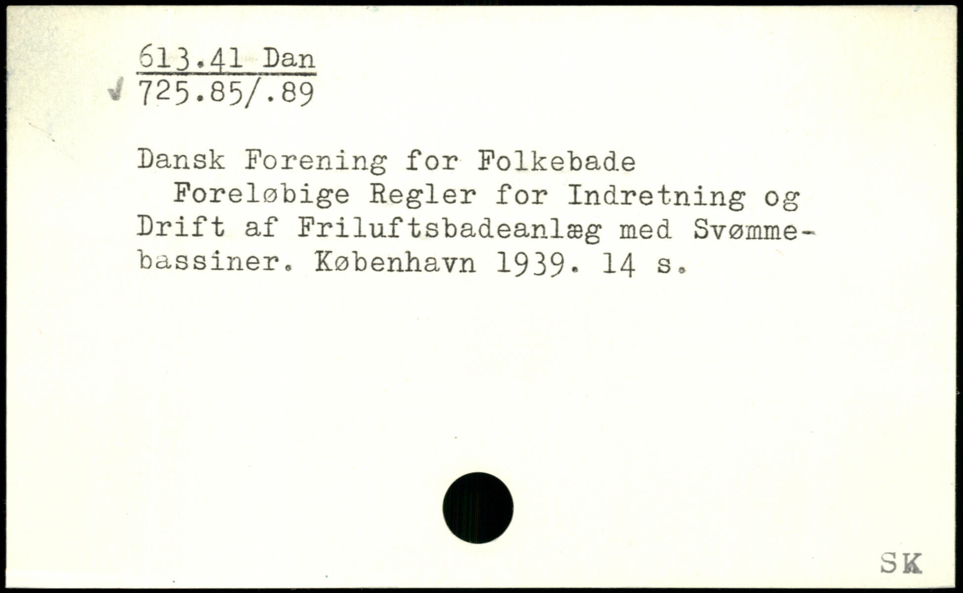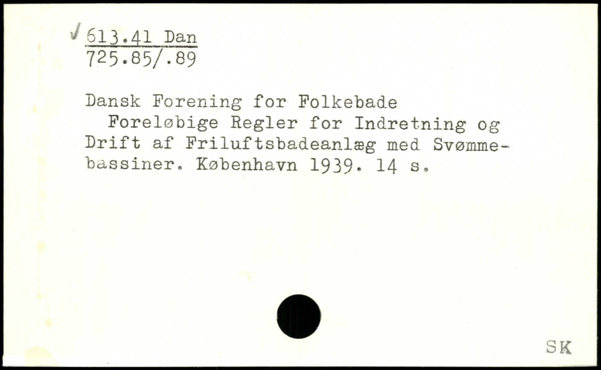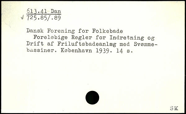 Dansk Forening for Folkebade Foreløbige Regler for Indretning og Drift af Friluftsbadeanlæg med Svømmebassiner.