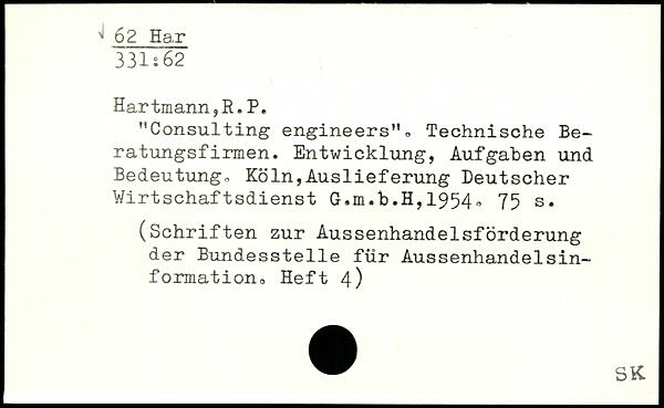 "Consulting engineers". Technische Beratungsfirmen. Entwicklung, Aufgaben und Bedeutung. Köln,Auslieferung Deutscher Wirtschaftsdienst G.m.b.H,1954