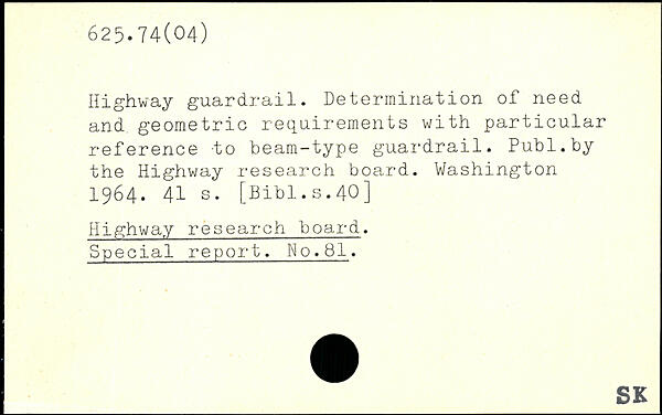 Highway guardrail. Determination of need and geometric requirements with particular reference to beam-type guardrail.