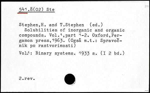 Solubilities of inorganic and organic compounds. Vol.i,part 1-2.