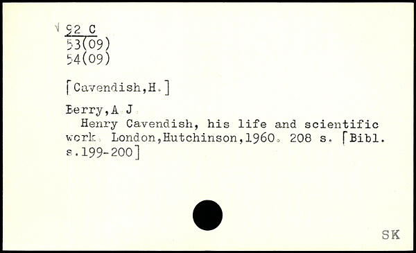 |Cavendish,Hv] Berry,A J Henry Cavendish, his life and scientific work.