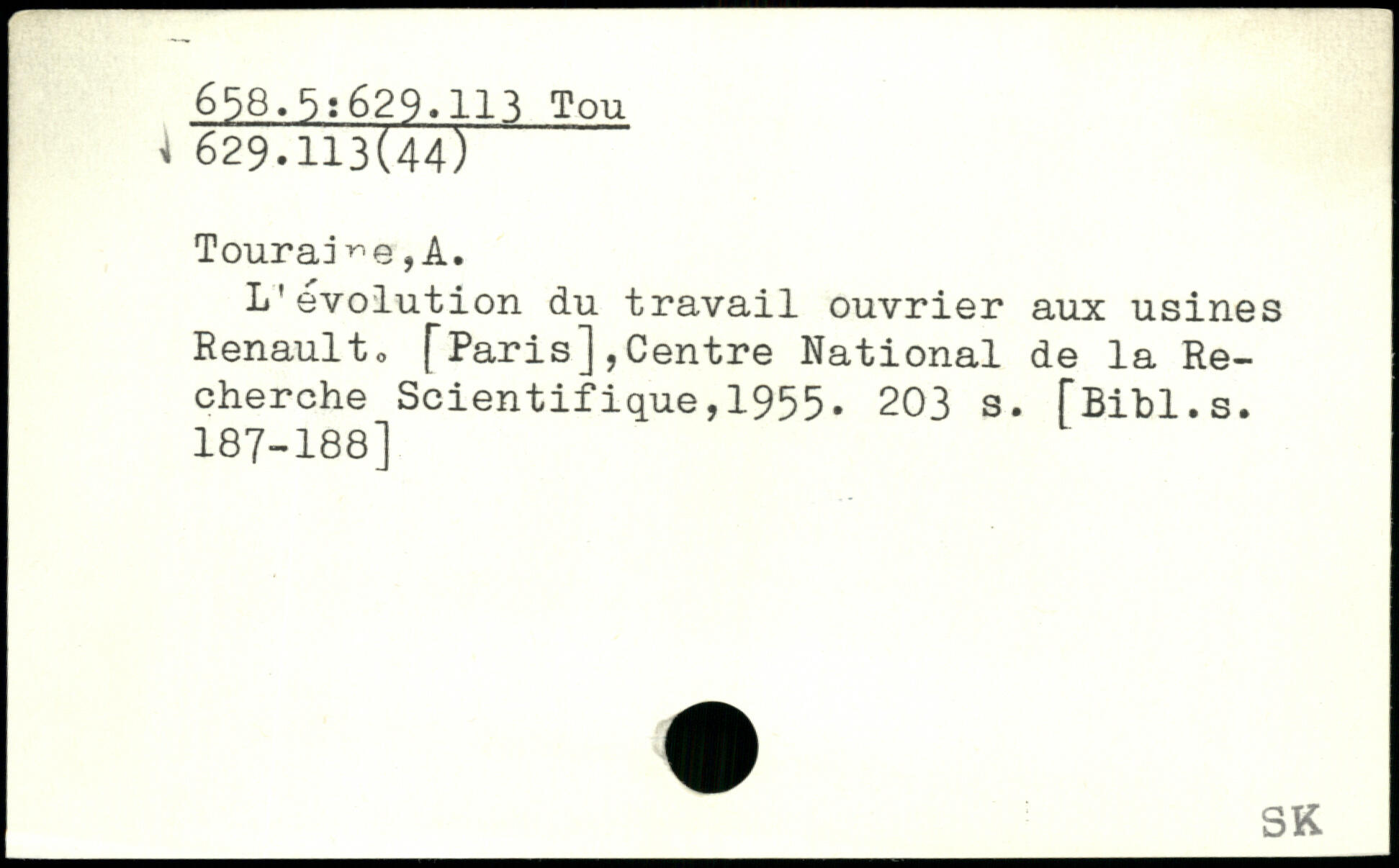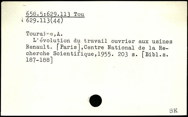 L'évolution du travail ouvrier aux usines Renault, [Paris],Centre National de la Recherche Scientifique,1955.