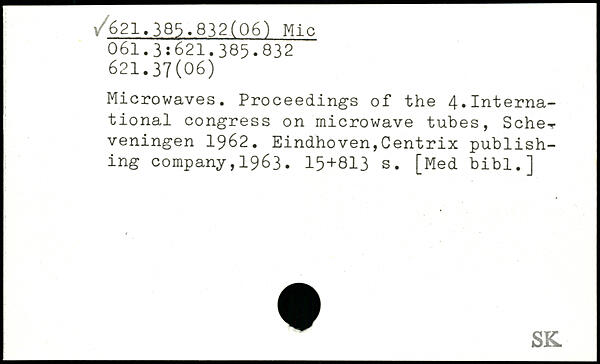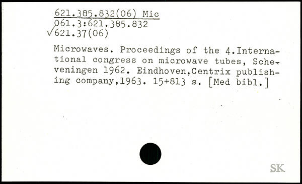 Microwaves. Proceedings of the 4.International congress on microwave tubes, Sehe-veningen 1962.