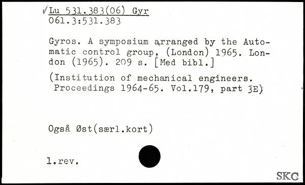 Gyros. A symposium arranged by the Automatic control group, (London) 1965. London (1965).