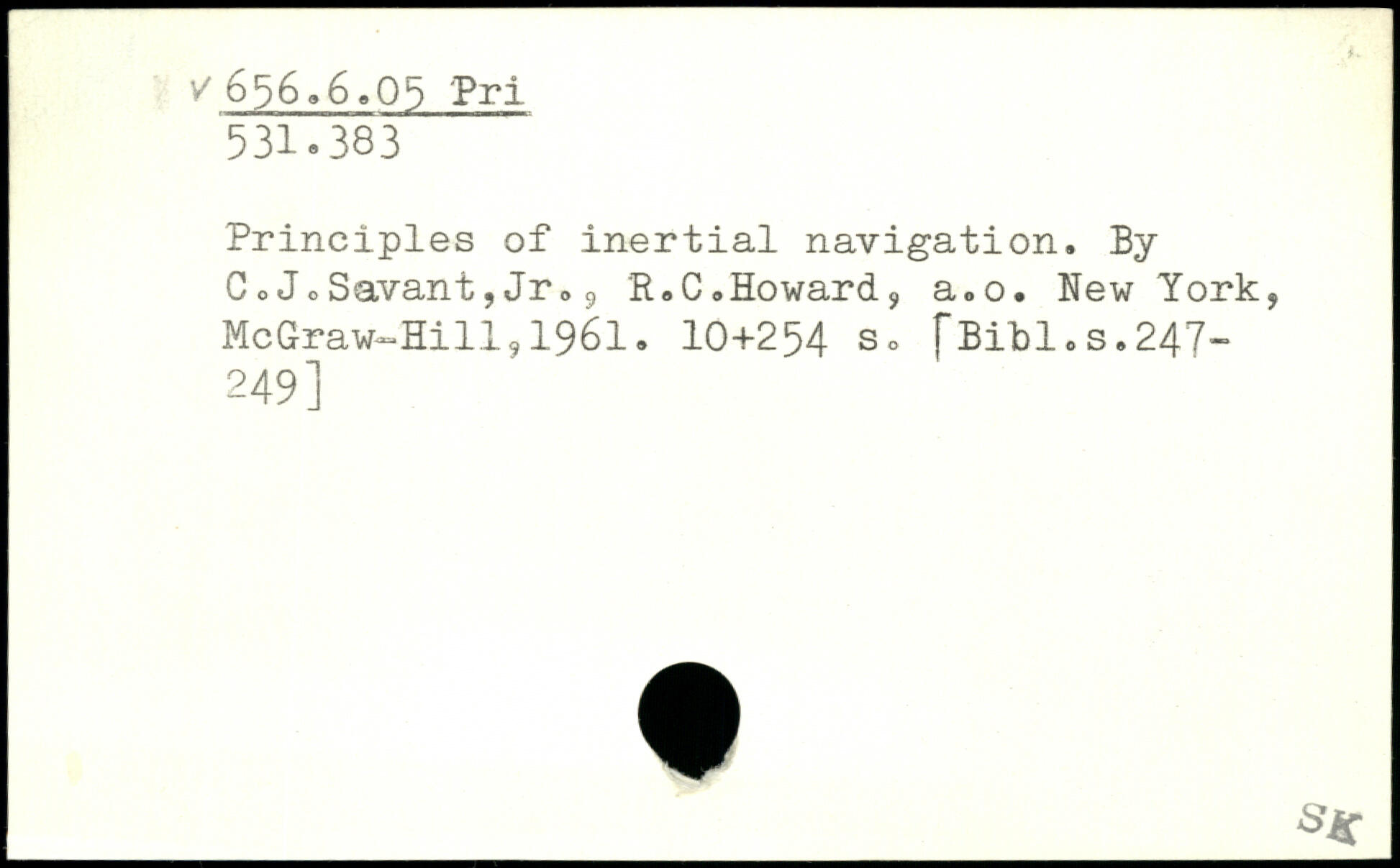 Principles of inertial navigation. By CcJoSavant,Jr.9 R.C.Howard, a.o.