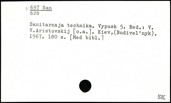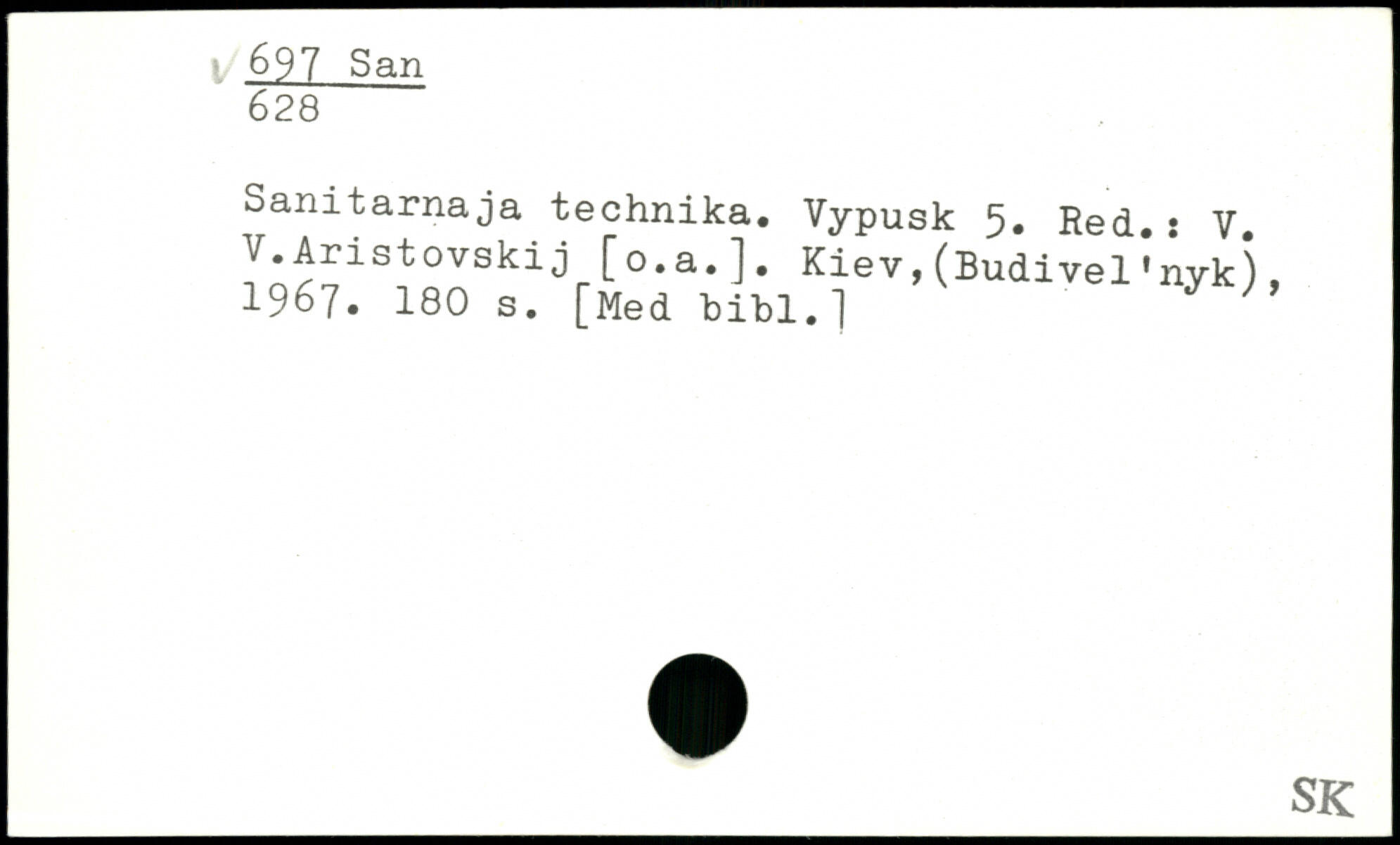 Sanitarnaja technika. Vypusk 5, Red,: V. V.Aristovskij [o.a.]. Kiev,(Budivel'nyk), 1967.