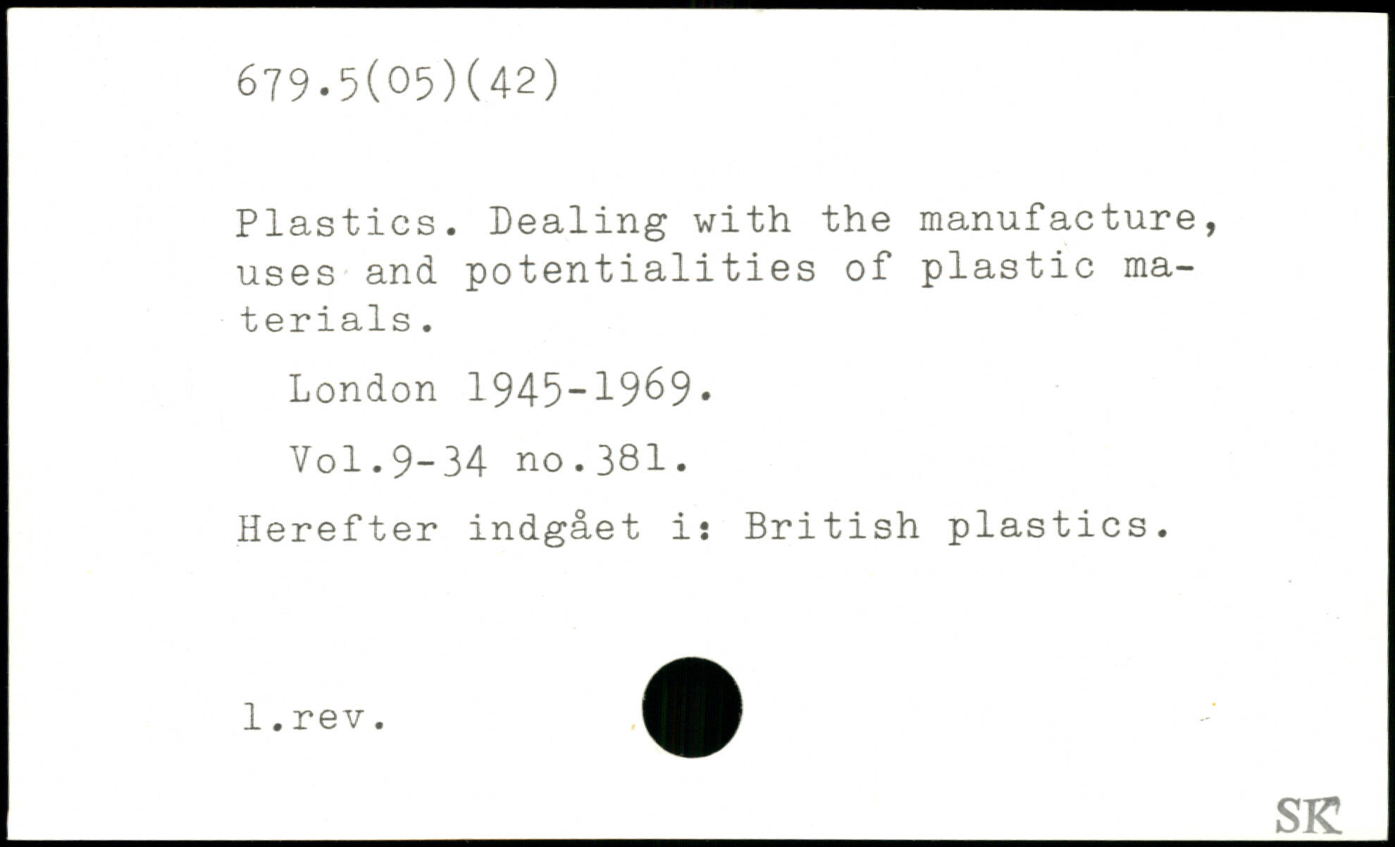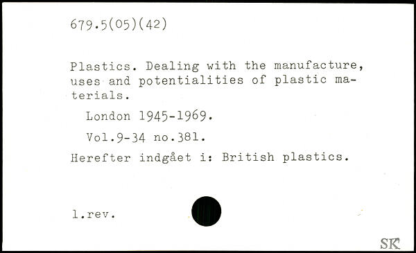 Plastics. Dealing with the manufacture, uses and potentialities of plastic materials.