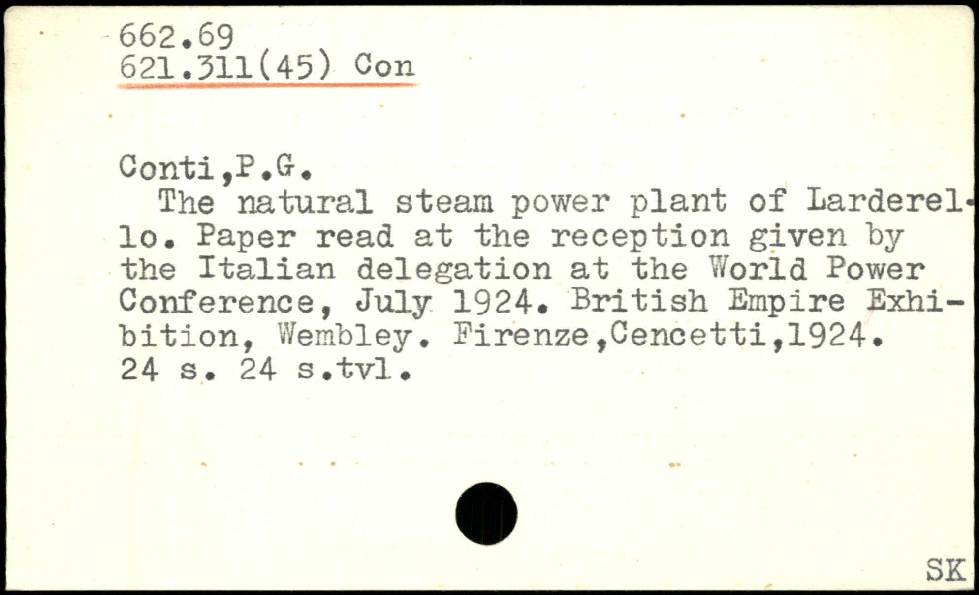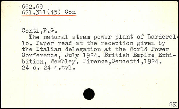 The natural steam power plant of Larderel. lo. Paper read at the reception given by the Italian delegation at the World Power Conference, July 1924. British Empire Exhibition, Wembley.