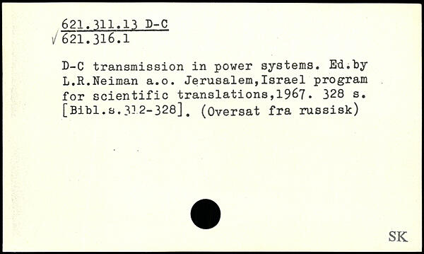 D-C transmission in power systems. Ed.by L.R.Neiman a.o. Jerusalem,Israel program for scientific translations,1967.