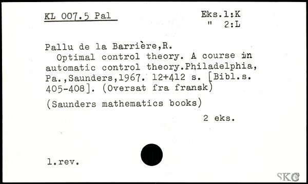 Pallu de la Barriere,R. Optimal control theory. A course in automatic control theory.