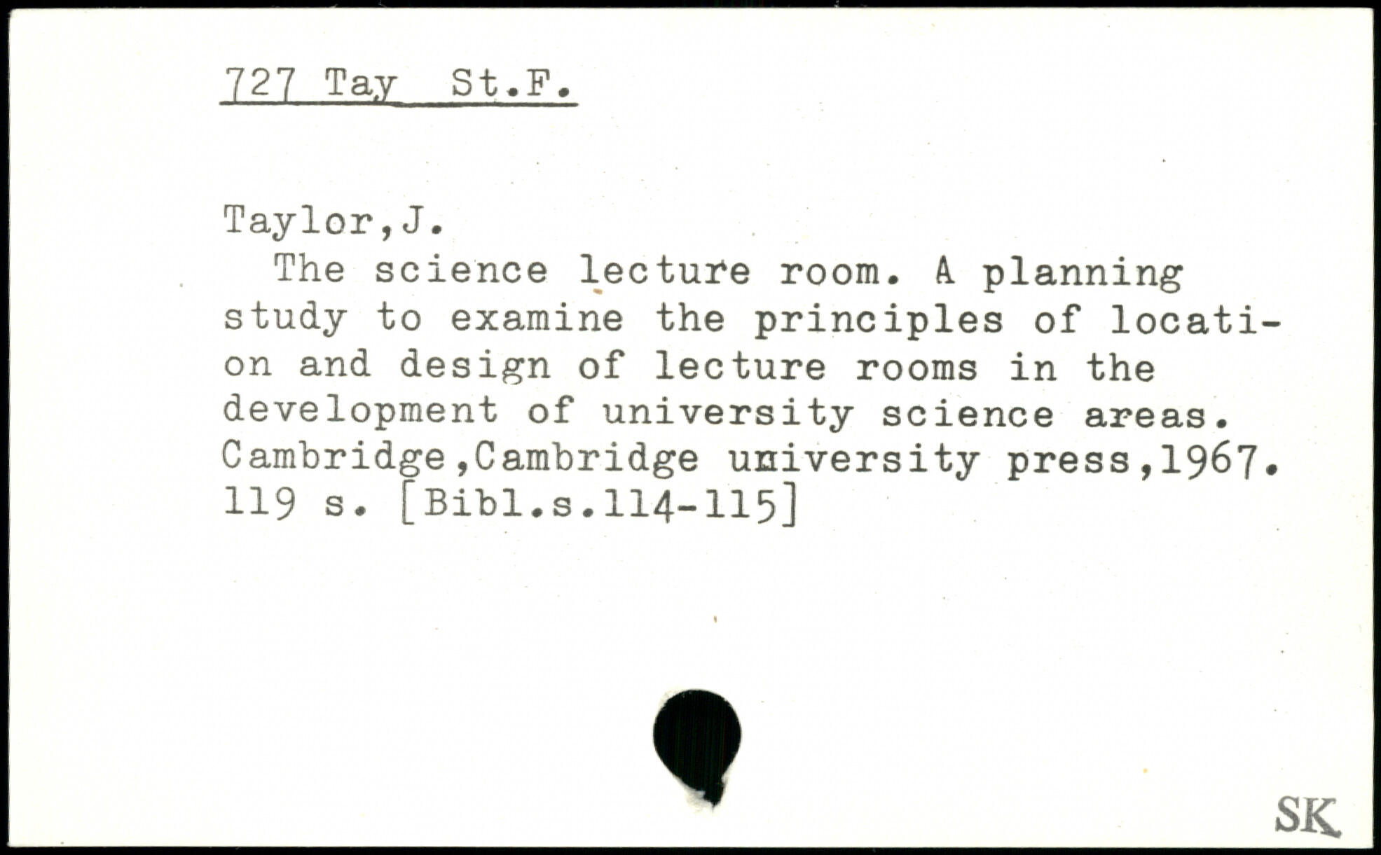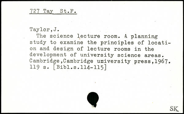 The science lecture room. A. planning study to examine the principles of location and design of lecture rooms in the development of university science areas.