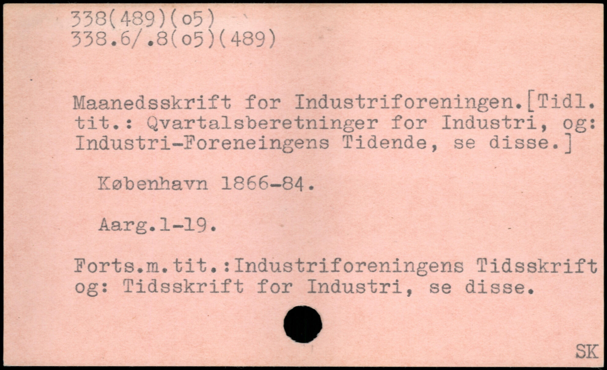 Maanedsskrift for Industriforeningen.[Tidl. tit.: Qvartalsberetninger for Industri, og: Industri-Foreneingens Tidende, se disse.]