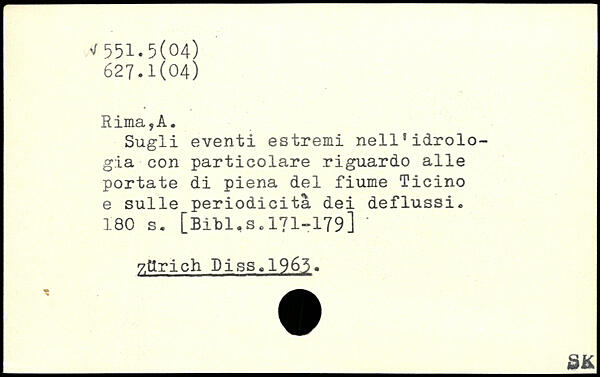 Sugli eventi estremi nell'idrolo-gia con particolare riguardo alle portate di piena del fiume Ticino e sulle periodicita dei deflussi.