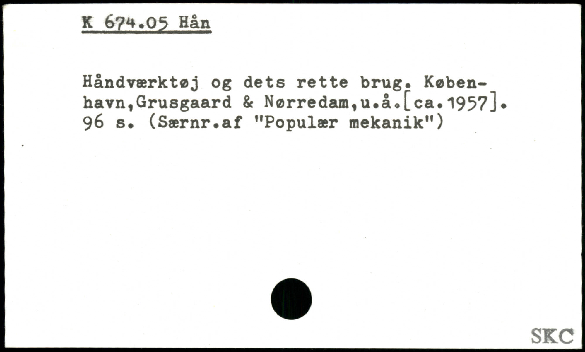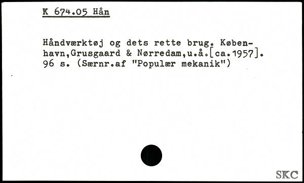 Håndværktøj og dets rette brug. København, Grusgaard & Nørredam,u.å.[ca.1957].