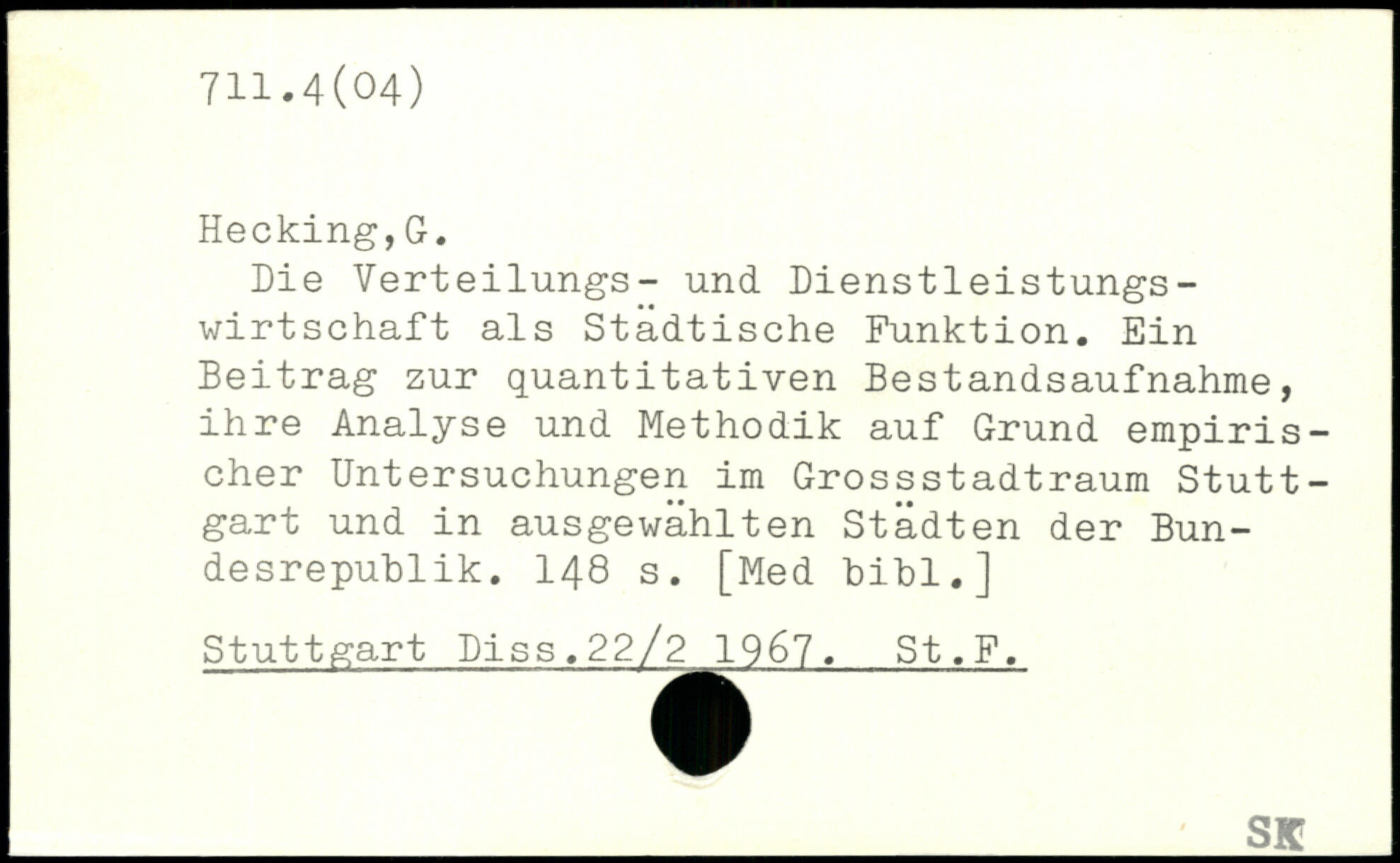 Die Verteilungs- und Dienstleistungswirtschaft als Städtische Funktion. Ein Beitrag zur quantitativen Bestandsaufnahme, ihre Analyse und Methodik auf Grund empirischer Untersuchungen im Grossstadtraum Stuttgart und in ausgewählten Städten der Bundesrepublik.