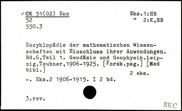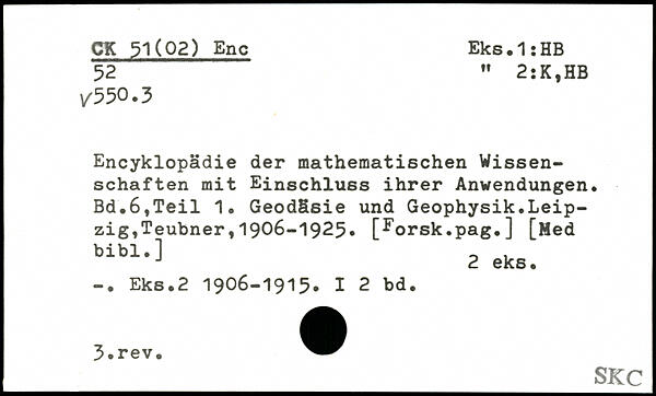 Encyklopädie der mathematischen Wissenschaften mit Einschluss ihrer Anwendungen.