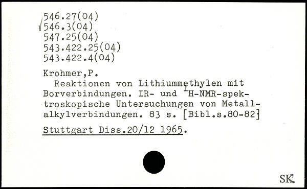 Reaktionen von Lithiummjthylen mit Borverbindungen, IR- und H-NMR-spek-troskopische Untersuchungen von Metallalkylverbindungen.
