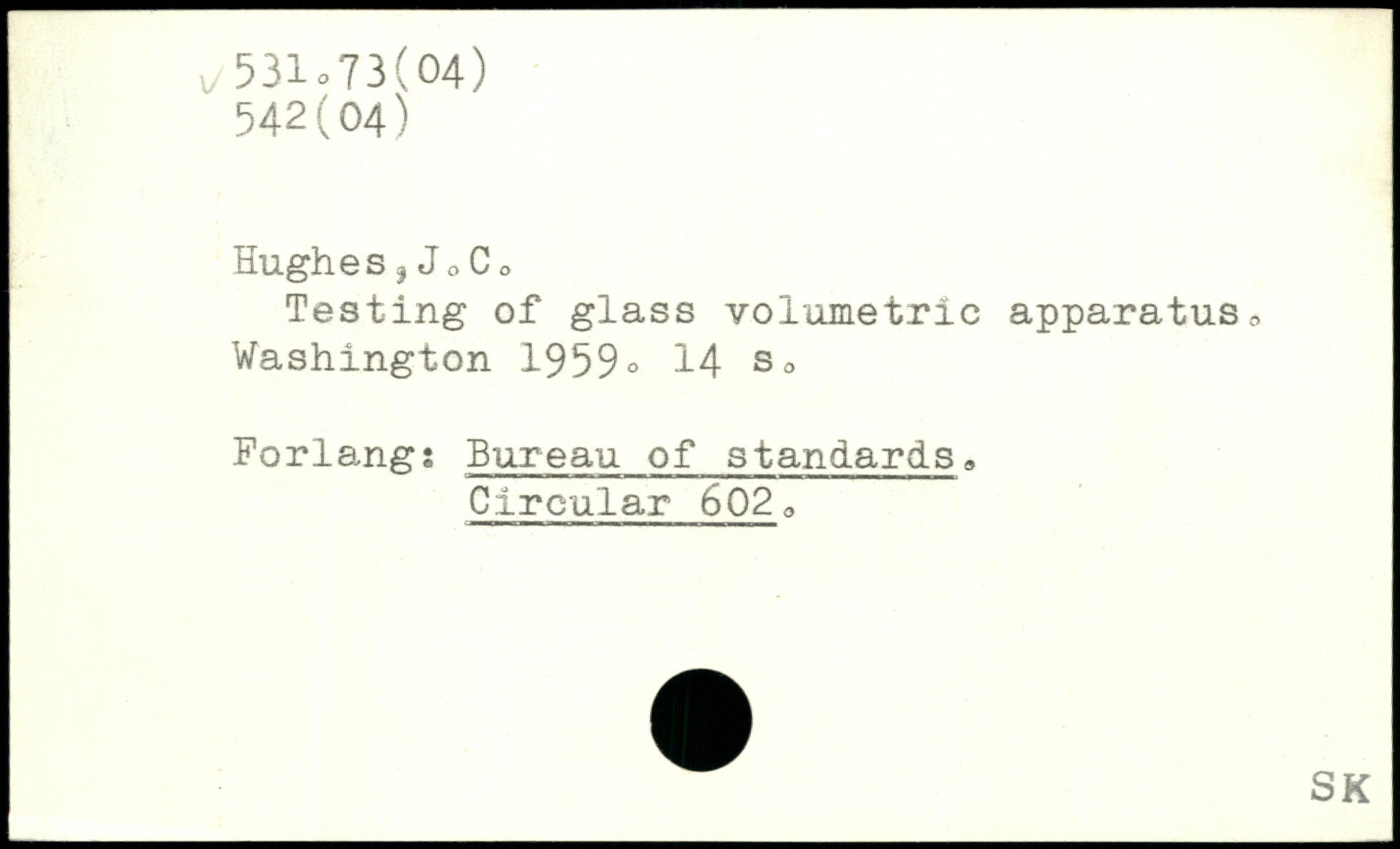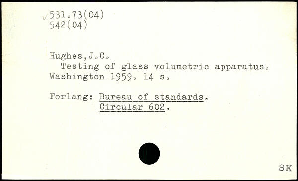 Hughes ? Jo Co Testing of glass volumetric apparatus