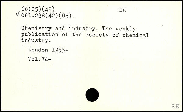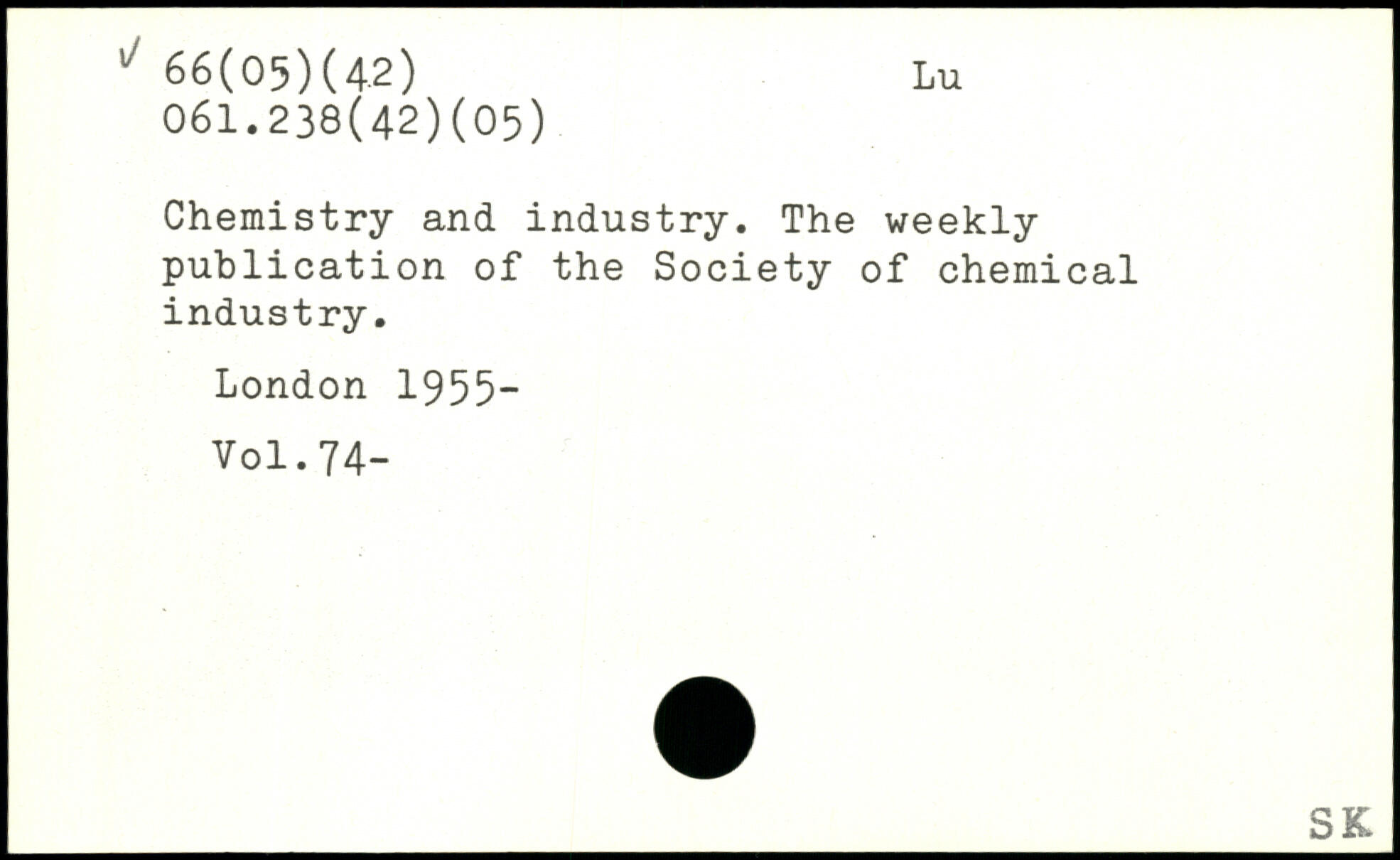 Chemistry and industry. The weekly publication of the Society of chemical industry.