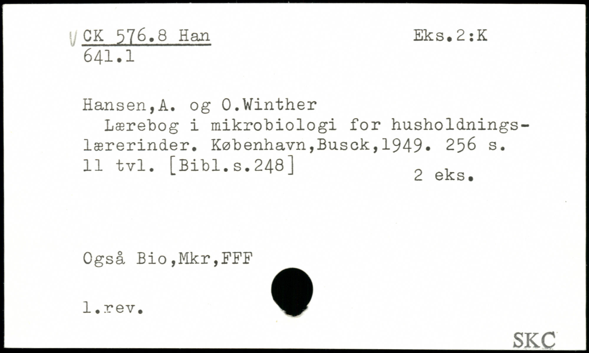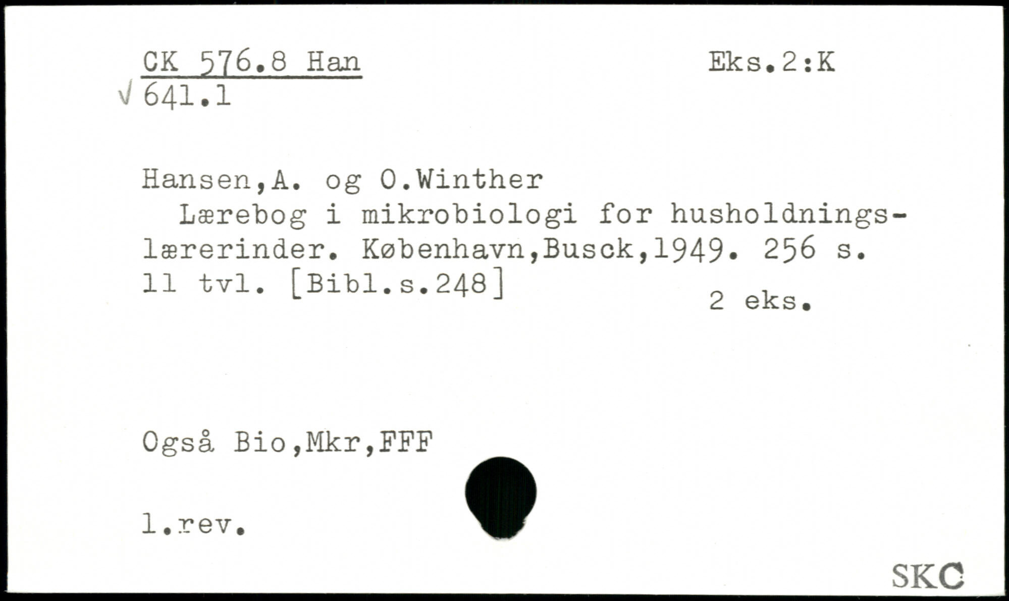 Hansen,A. og 0.Winther Lærebog i mikrobiologi for husholdningslærerinder.