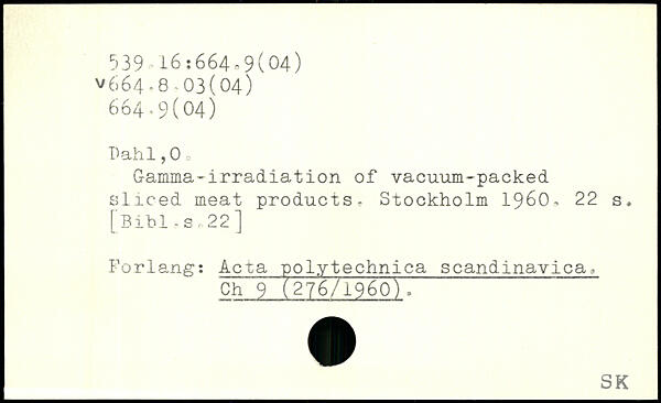 "Dahl,0 o Gamma .'irradiation of vacuum-packed sliced meat products-