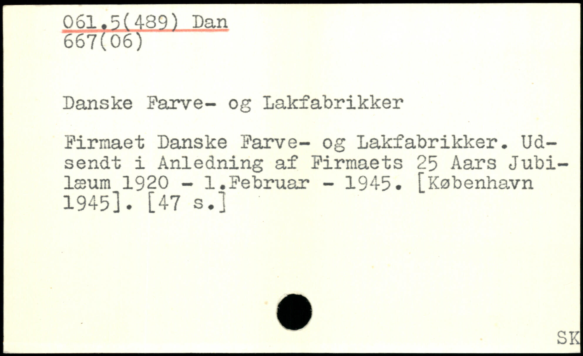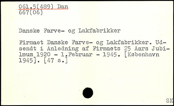 Danske Parve- og Lakfabrikker Firmaet Danske Farve- og Lakfabrikker. Udsendt i Anledning af Firmaets 25 Aars Jubilæum 1920 - 1.Februar - 1945
