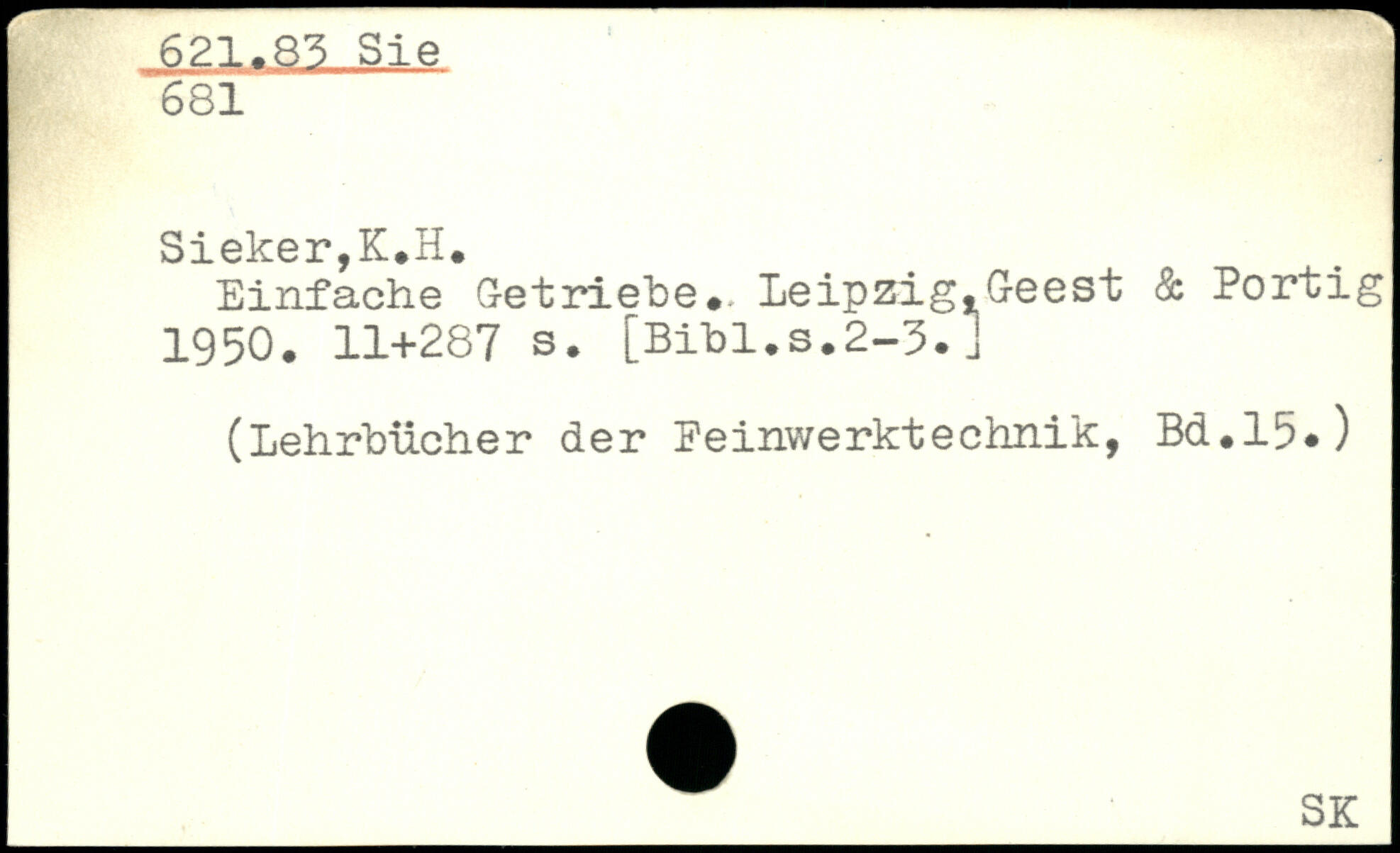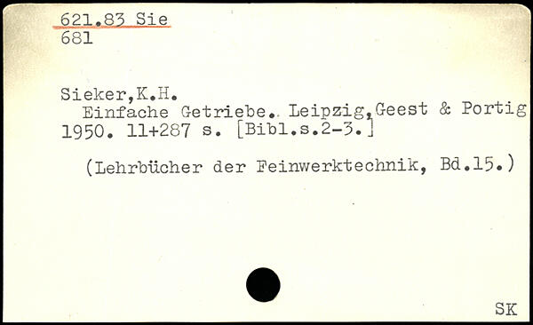 Einfache Getriebe.. Leipzig.Geest & Portig 1950