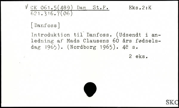 Introduktion til Danfoss. (Udsendt i anledning af Mads Clausens 60 års fødselsdag 196^). (Nordborg 1965)