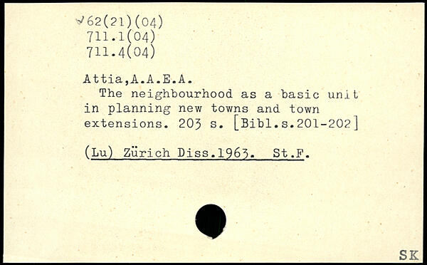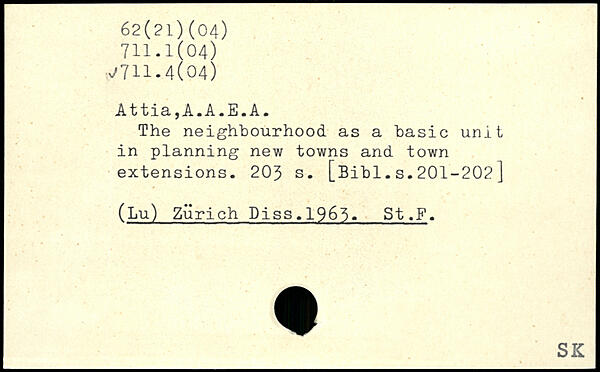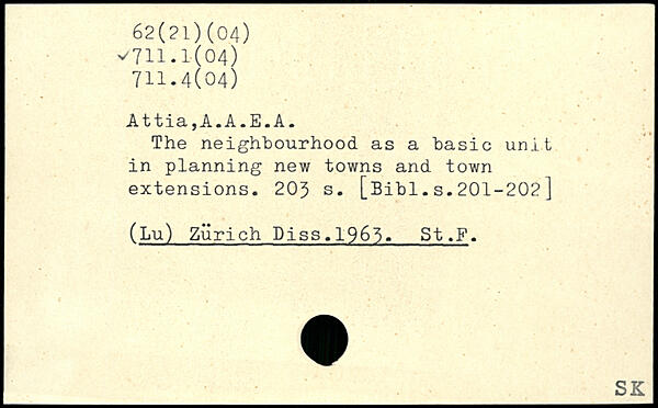 The neighbourhood as a basic unit in planning new towns and town extensions.