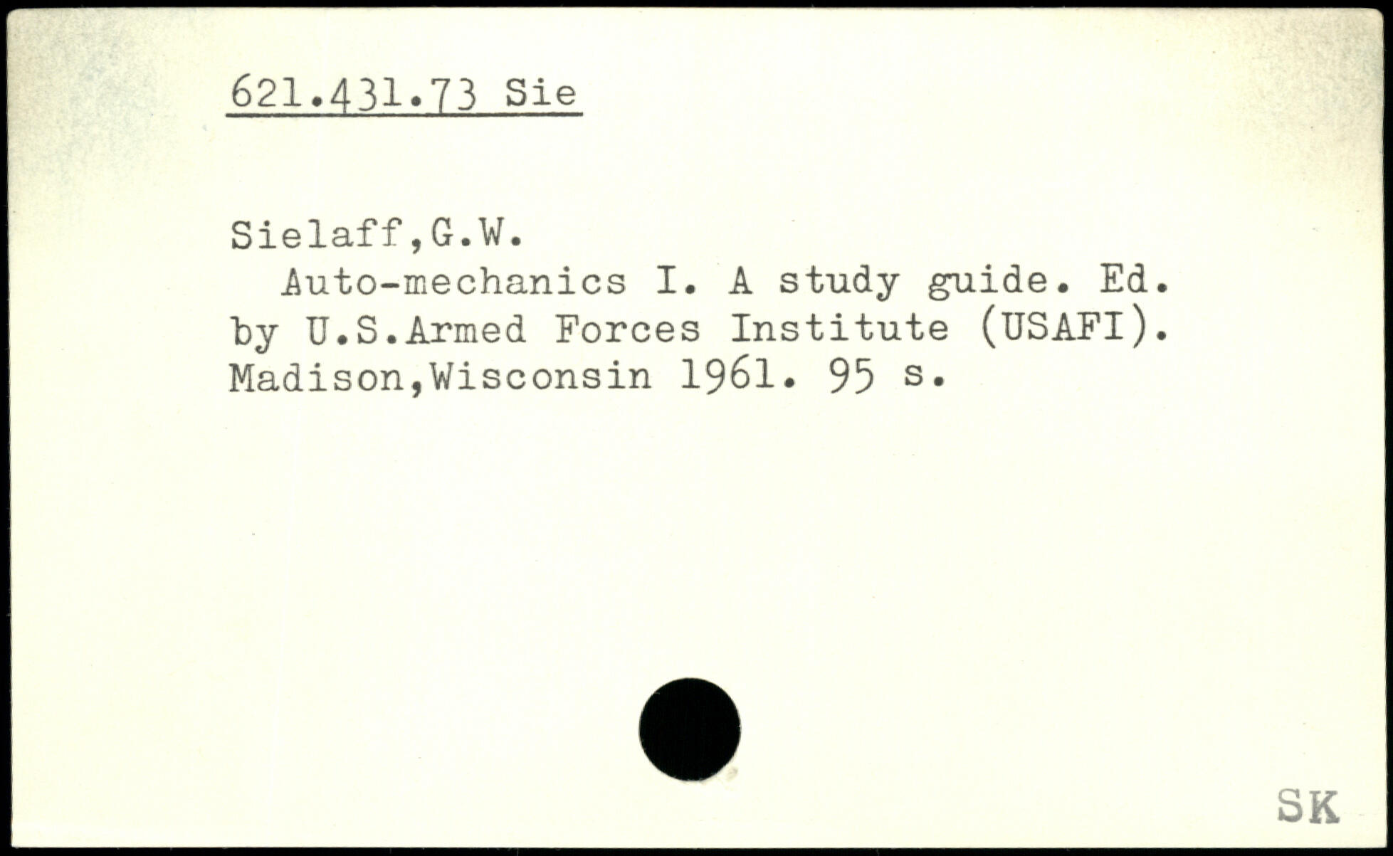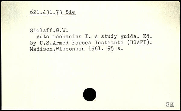 Auto-mechanics I. A study guide. Ed. by U.S.Armed Forces Institute (USAFl). Madison,Wisconsin 1961.